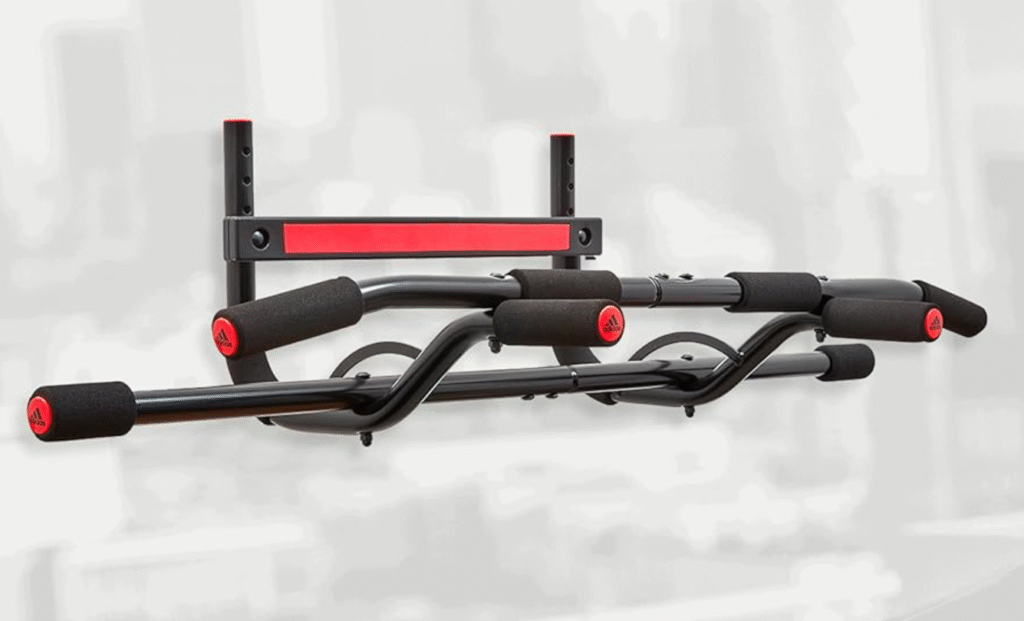 Fabricada con estructura de acero y agarres antideslizantes, esta barra de dominadas Adidas es ideal para quienes buscan un equipo confiable, fácil de montar y eficiente para fortalecer la parte superior del cuerpo y el core desde casa.