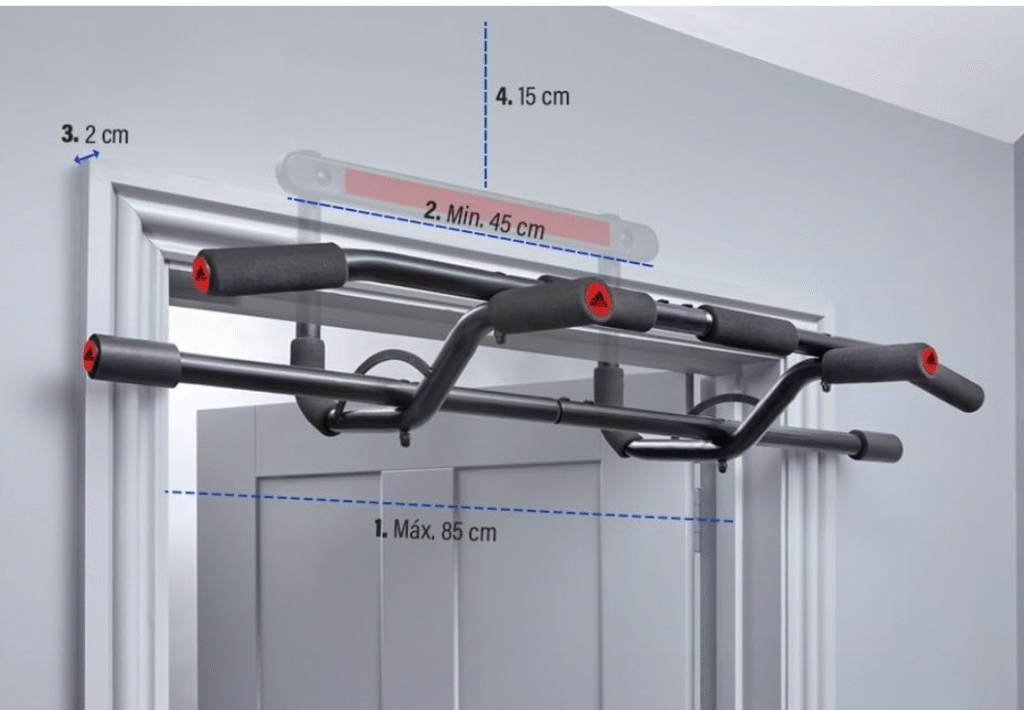 La barra dominadas para puerta Adidas te permite realizar dominadas, abdominales, fondos y flexiones sin necesidad de instalaciones permanentes. Gracias a su diseño ajustable, acolchado y ergonómico, puedes entrenar en cualquier momento y lugar, con total estabilidad y sin dañar el marco de la puerta.