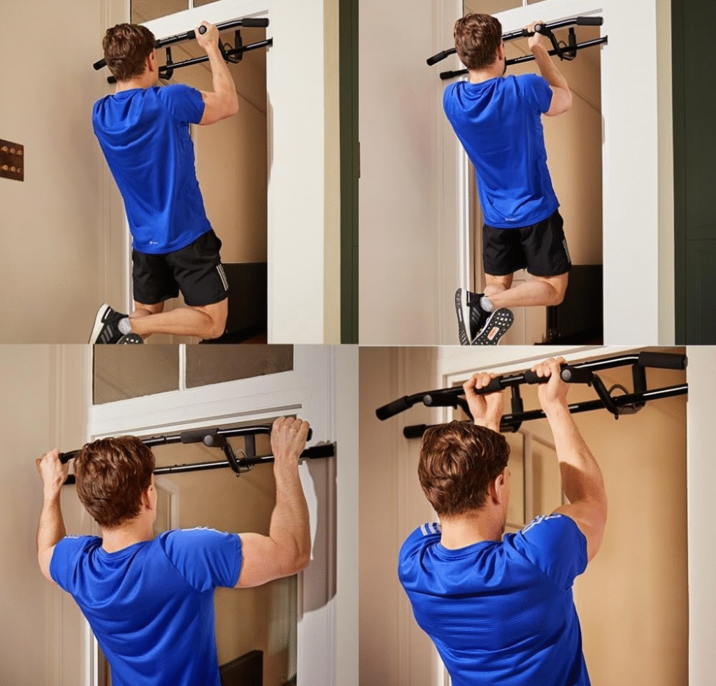 - Descripción: Realiza dominadas con agarre prono, supino o neutro para activar distintos músculos de la parte superior del cuerpo.