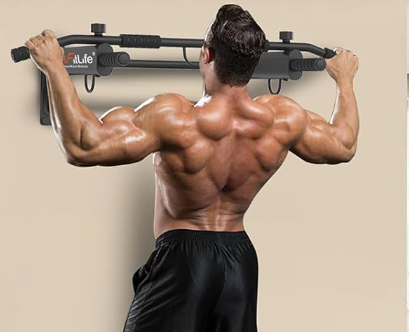 Las dominadas con agarre prono son uno de los mejores ejercicios para hacer dominadas en casa. Se pueden realizar con cualquier tipo de barra de dominadas (ya sea de tracción, de pared, de techo o máquina) — trabajarás principalmente los dorsales y bíceps.