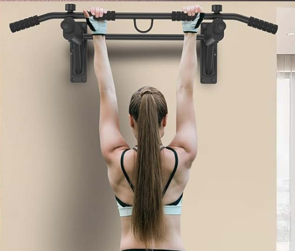 Descripción: El uso clásico de la barra de dominadas de tracción, ya sea en marco de la puerta, pared, techo, o torre de dominadas.